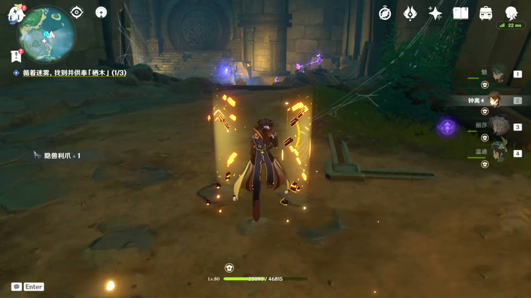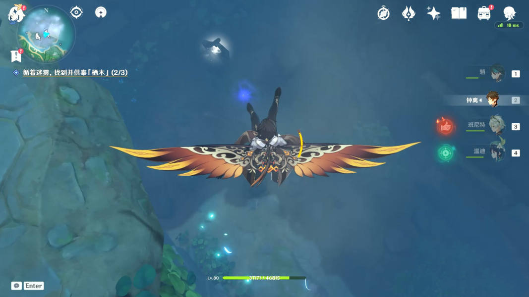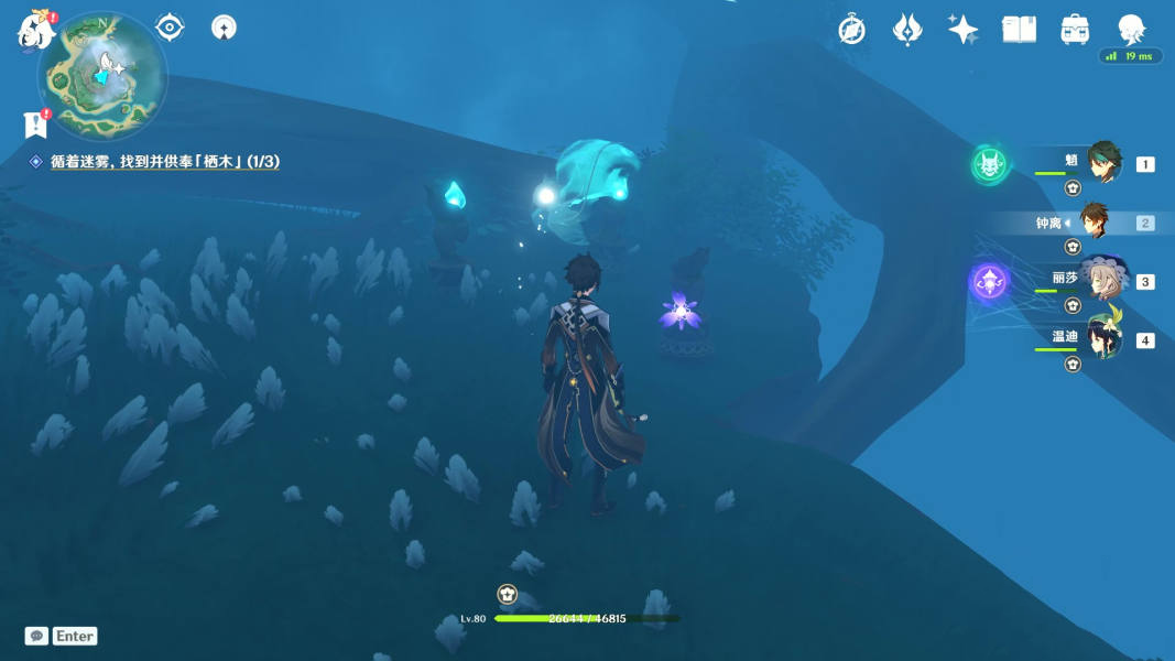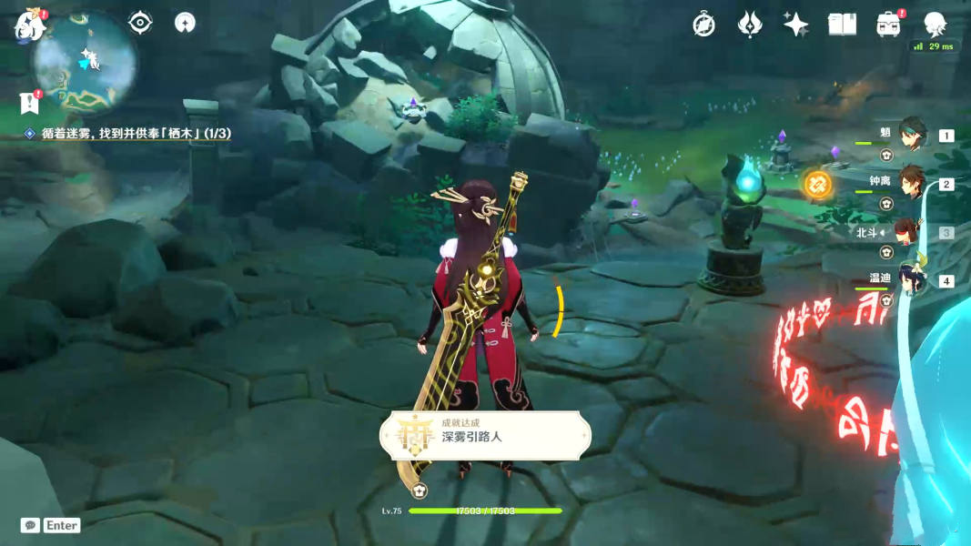 值得一提的是,第二处羽毛旁有三个仙灵,指引回去后,可以获得成就【深雾引路人】。