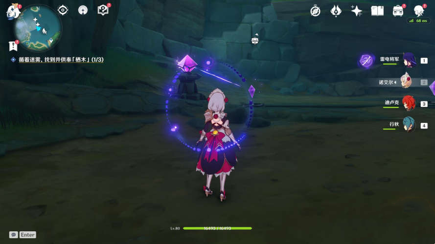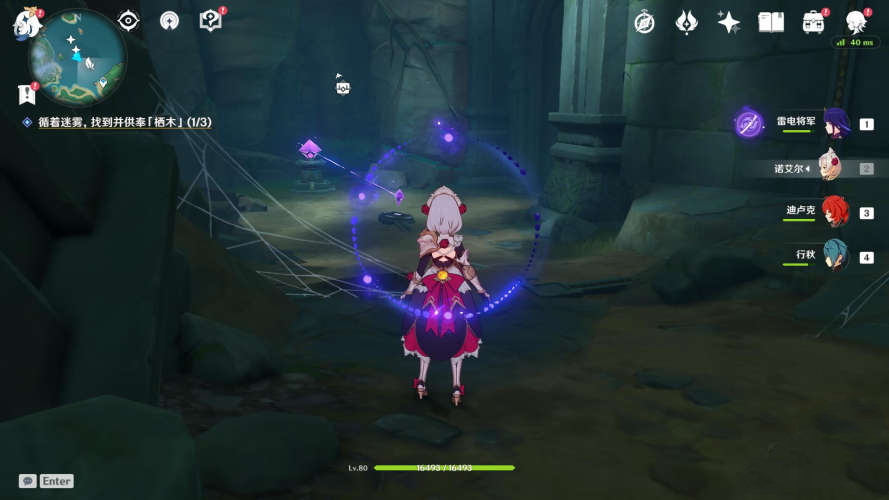2、图二这里是第一个仙灵所在位置,就是在山洞门口,NPC前方,其他两个仙灵不用担心不知道位置,找到门口这里仙灵后,它会带你去找另外两个仙灵,凑齐三个就行了。
