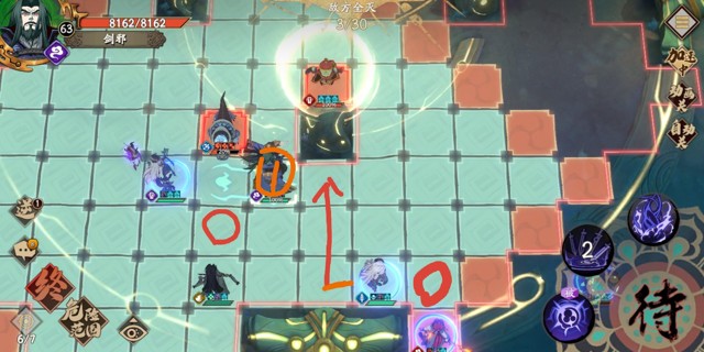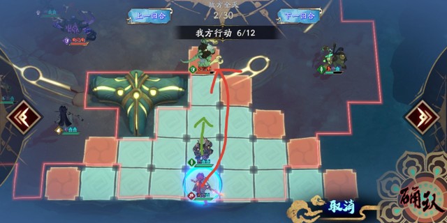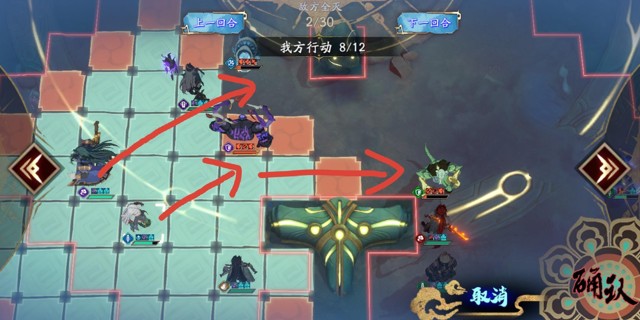 下回合要一回合干出3个支援甚至秒了黎幽,走位回到左下,等尉迟过来,先晕再秒。