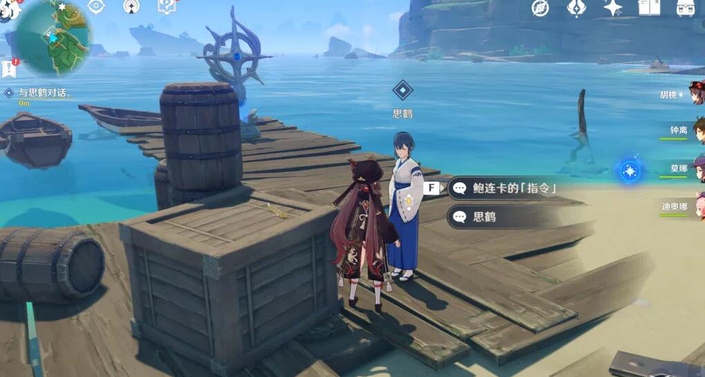 1.来到海祗岛,在传送锚点附近,与思鹤对话,任务开始。