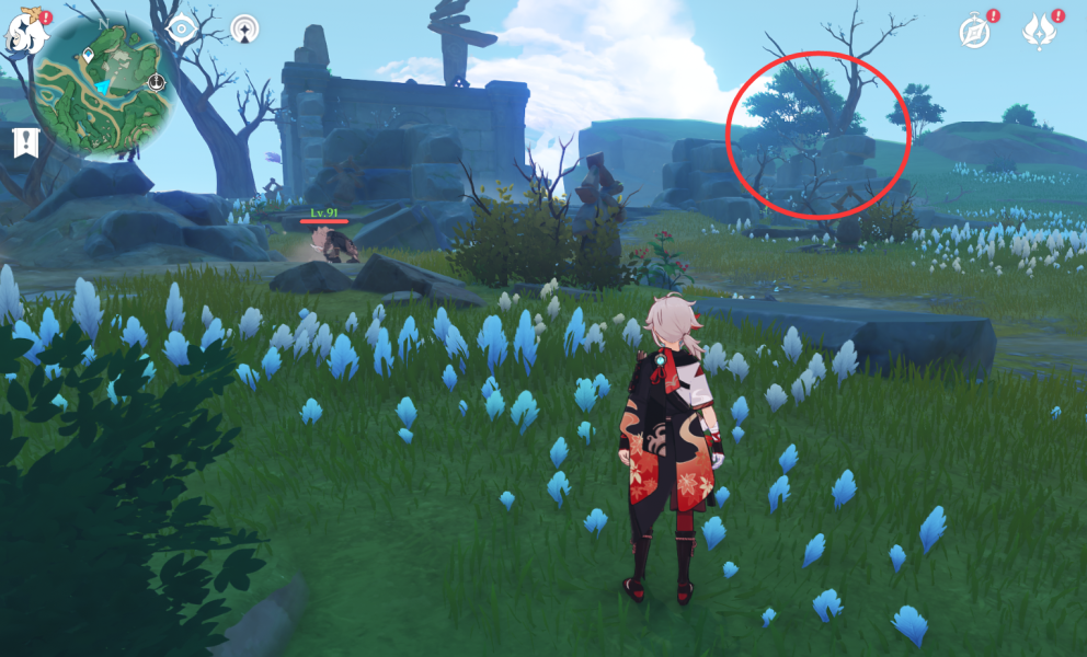 3.听完他发完牢骚后,前往千来神祠寻找一处坟墓,坟墓就在这棵树底下,通过挖掘方式,会出现一个雷铠丘丘王,击败后,蛎罗会突然出现告诉我们这是他的恶作剧,最后得到一个珍贵的宝箱,该委托结束