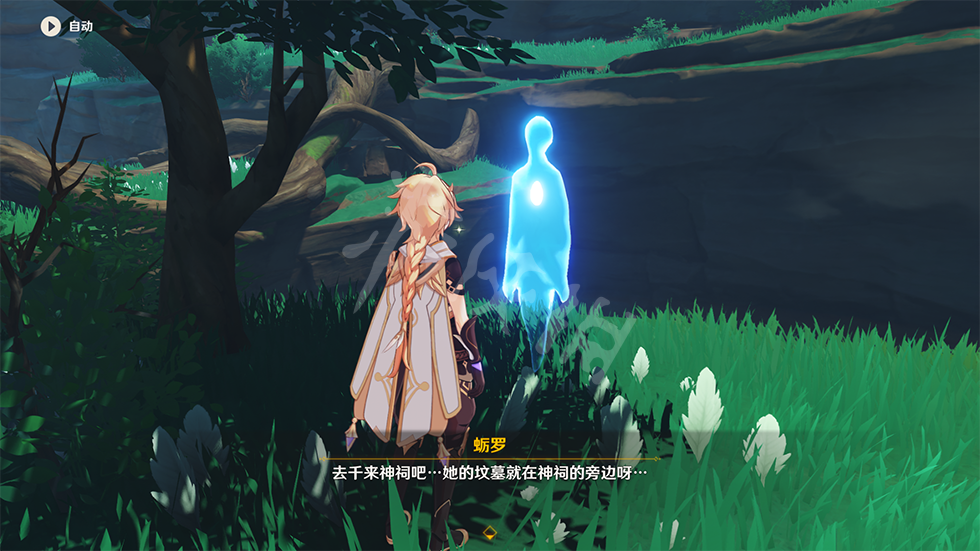 首先来到神伺对面的山崖上跟这个叫蛎罗的幽灵对话。
