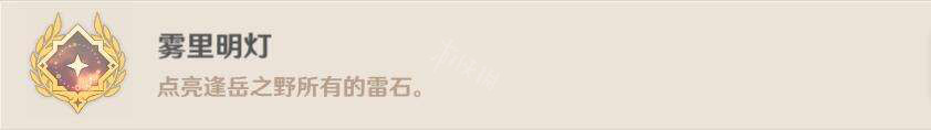 雾里明灯是游戏2.2版本中上线的全新成就,完成条件为:点亮逢岳之野上所有的雷石。