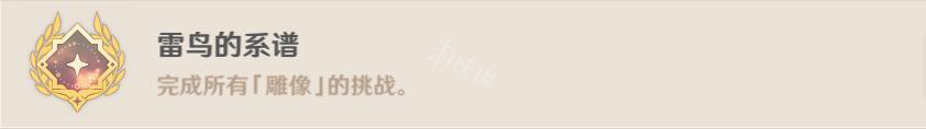 雷鸟的系谱是鹤观岛上的全新成就,完成条件为:完成所有「雕像」的挑战。