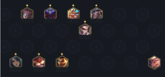 加里奥来到早的话可以去组成5龙族,如果加里奥不来也不用强求,中期利用龙族孵化出的英雄,提升一下艾希的星级。后期需要快速升8人口,去搜阿克尚、大头、狗熊和盖伦等单卡强度高的5费英雄,再将其追出二星后阵容成型。
