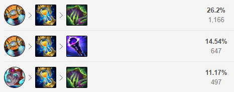 推荐核心三件套海克斯科技腰带、沙漏以及莫雷洛秘典。