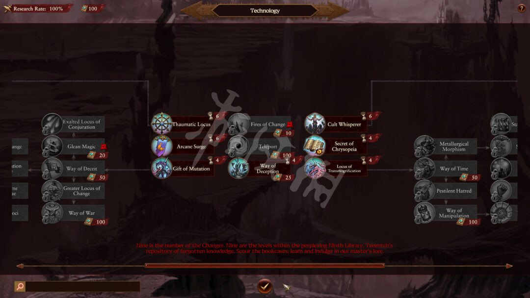 最后,奸奇对于知识无比看重,因此有着无数的方法可以加快研究速率——包括戒律、建筑和一些常规方式,例如英雄行动。提前做好规划后,你便可以在科技树上迅速攀升,赶在对手之前建立起廉价、高效而无人能挡的大军。