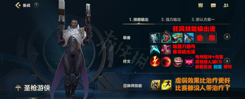 另一套就是吸蓝刀盾弓,双重续航,更加倾向于普攻输出,优点是容错率高,缺点是伤害肯定要低(这套可以带强攻血统)但说实话卢仙就不是打持续输出的角,理应放大卢仙高爆发的优点。