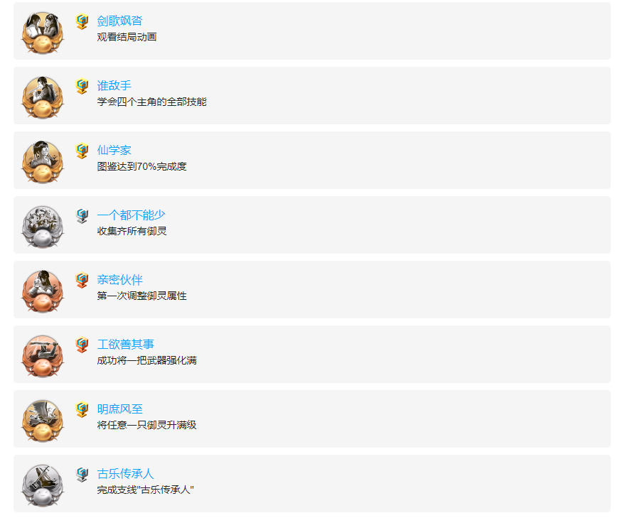 仙剑7全成就奖杯一览