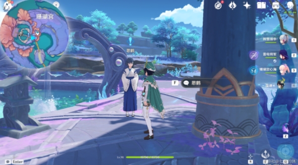 1. 在珊瑚宫大门前与巫女思鹤对话,接取任务。