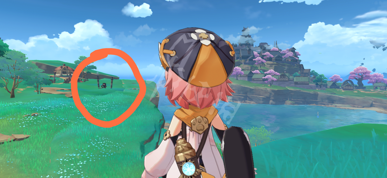 站在台阶上 ,就在下图迪奥娜这个位置 ,打这个丘丘暴徒(要打到头,打出暴击)就可以了。