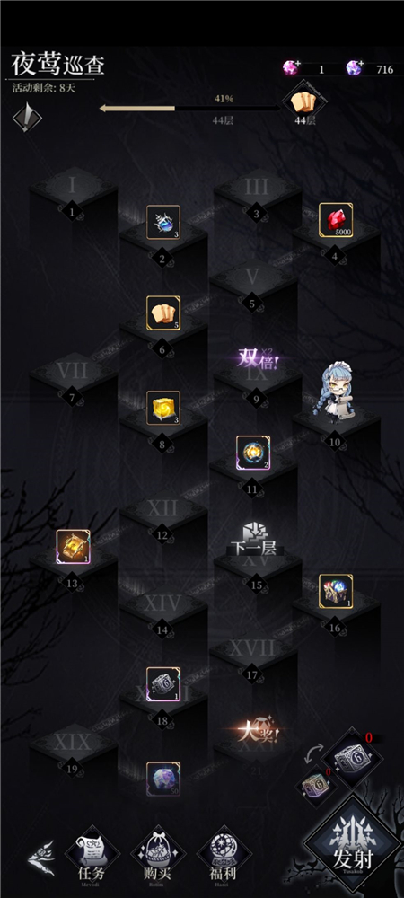 那我今天自己的层数来说。今天是第6天,我已经走了36层,现在在37层,然后我花了2000那个什么晶石去买次数。
