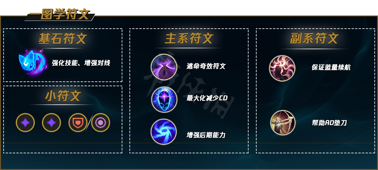 搭配一些AP打野英雄,如莉莉娅、死歌、艾克、寡妇等。在他们装备优势时跟随可以无限放大他们的优势。