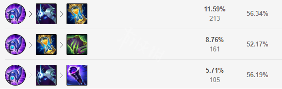 神话装备首选卢登,增加妖姬的爆发伤害,被动附带的回声效果也有利于清线,让妖姬前中期可以更容易秒掉脆皮。星界驱驰增加伤害的同时还有一定的血量提升,被动触发获得移速,提升妖姬容错率,再加上中娅三件装备具备后团战能力更强,后续装备可以选择鬼书+法穿棒。