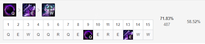 Q技能是主要的输出技能,能够清线和打伤害。E技能配合Q有控制,秒人很强。
