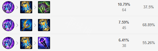 卢登为前期发育最主要的输出续航装备,中亚作为保命装备可针对刺客进行选择性出装,鬼书能够提升法穿进一步提升伤害和坦度,后续推荐大帽,法穿棒等输出装备。