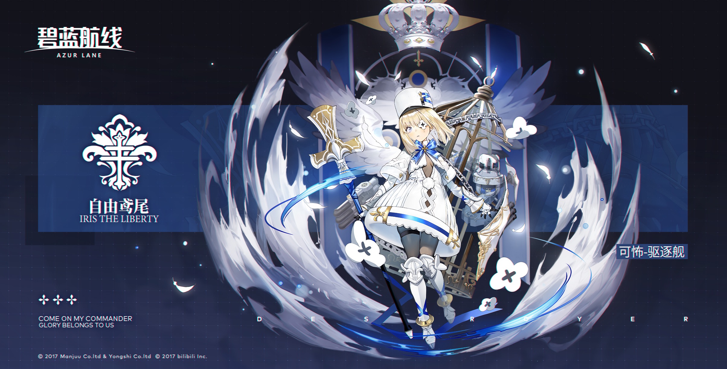 “守卫自由鸢尾,身负‘优雅’之名的超级驱逐舰可怖,为追随指挥官大人的意志而来。指挥官大人,您一直奋斗至今的理由是什么?请让可怖好好见识一下吧。”
