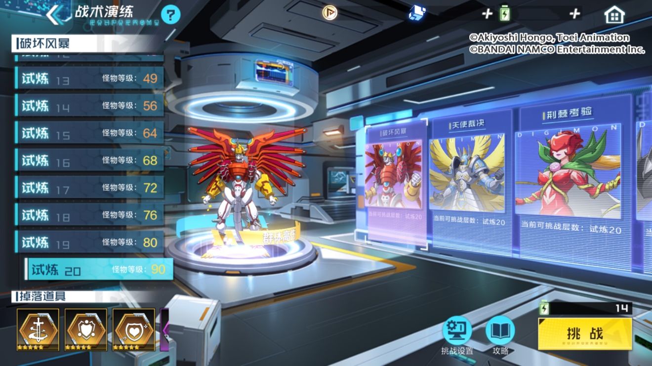 破坏风暴:该副本中,Boss拥有强大的攻击能力,在辅助角色释放奥义技后,会给Boss闪光暴龙兽增加狂暴状态,大幅度提升其攻击力。建议选用尼普顿兽、座天使兽、天女兽等游戏内带有驱散效果的数码宝贝,驱散增益便能防止被Boss一招击败。