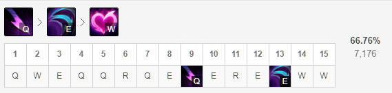 Q技能是寡妇的主要输出技能,所以我们选择率先点满。E技能的百分比伤害在打坦上非常好用,我们选择其次升满。而W技能更多的是利用其打出控制,前期只要一级即可。