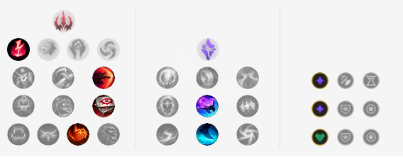主系选择主宰,能够让寡妇有更高的伤害。电刑可以提升她的技能连招伤害,让她的爆发更高。因为需要不断的跑图带动节奏,所以无情猎手所提供的移速也非常重要。副系选择巫术,迅捷和水上行走,同样为其增加了大量移速,让她在龙团中更有优势。