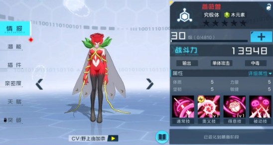 2、蔷薇兽是木属性的数码宝贝中单体输出强力的角色,可以在短时间内对目标赋予大量的中毒效果,契合多种队伍的搭配;