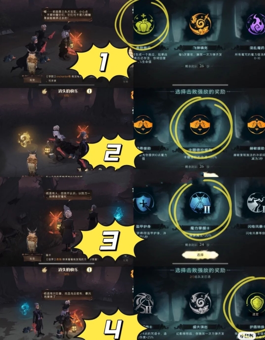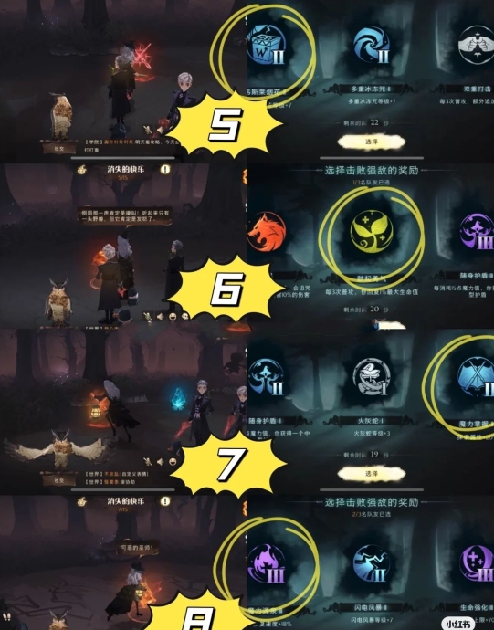 关卡选择:红色沙漏>金色问号>红色叉(其他尽可能不选)每一关结束都会给一个buff‼️