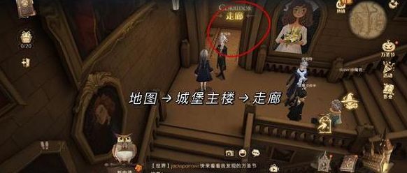 2.城堡主楼→一直向上走→进入走廊→点击石墩→分享后获得400南瓜币;