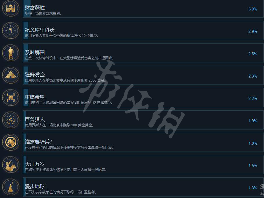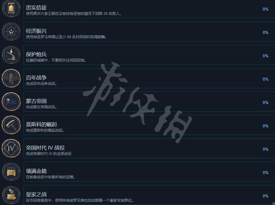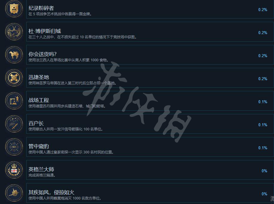 街机cn 来源:厂商 发表于:2021-10-29帝国时代4成就有哪些?游戏已经正式解锁了,本作中的成就非常丰富,共有89项等待大家的收集,这里给大家带来了帝国时代4全成就列表一览的相关介绍,一起来看下都有哪些成就吧。