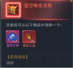 ◆【星空蛛皇宝箱】可从星空守护(绝·魂导器激活道具)、蛛皇之血中选择一个获得(注意:已激活“星空守护”的玩家兑换宝箱后也无法选择“星空守护”道具);
