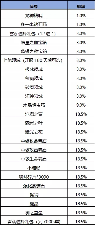 ◆活动期间,开放天狐、饕餮神牛、箫鼎、双生蛛皇、奇茸通天菊、蛇皇、泰坦、猫鹰、鬼魅、六翼天使、九心海棠、七杀剑、骨龙、蓝电霸王龙、玄龟、香肠、灵猫、三炮、昊天锤等武魂的限定魂环置换;
