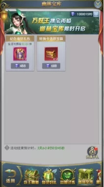 活动期间,将开启妖王秘藏、仙灵好礼、凶兽试炼、幽林宝库、限时置换等五项内容。