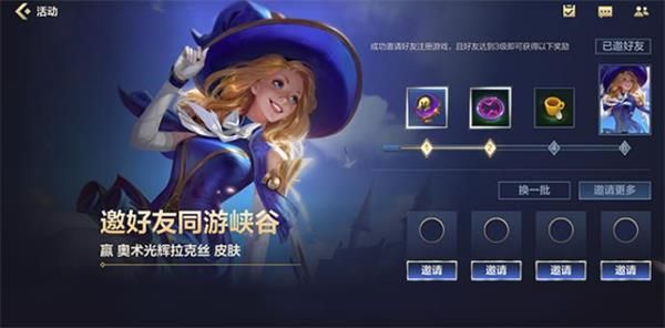 各位召唤师们在本次的活动中通过邀请自己的好友参与到同游峡谷的活动中即可得到奖励的,不过邀请的人数不同召唤师们所能得到的奖励也是有所不同的,同时也是需要新玩家进入到峡谷后等级要得到3级之后才能顺利的领取到奖励的。