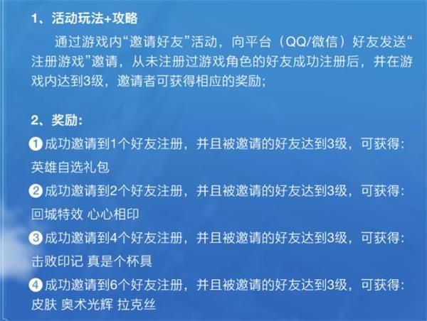 A、成功邀请1个好友注册,并再其等级达到3级时可以获得英雄自选礼包;