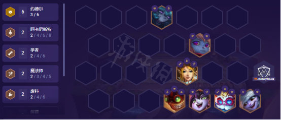 6约德尔的特点和低费主C赌狗阵容完全相同,前期打连败开局,中期赌3星强势连胜,后期全面追3星再上5费卡补强达到上限。
