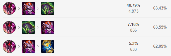 E技能必然主加,尤其是在下路对线时,扔几个儿子在草丛中,爆炸一下非常疼。Q技能带有一定的AOE伤害和控制,在贴脸近战中非常好用。