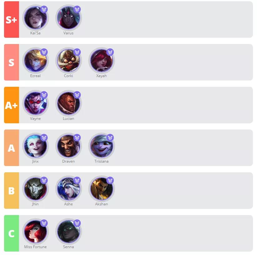 AD位置卡莎前中期伤害被大砍一刀,但后期还是强,卢锡安来了波小加强。在AD的选择中,大家可以试试EZ,主要他装备便宜成型快,有魔切+三项战斗力就非常可观了。