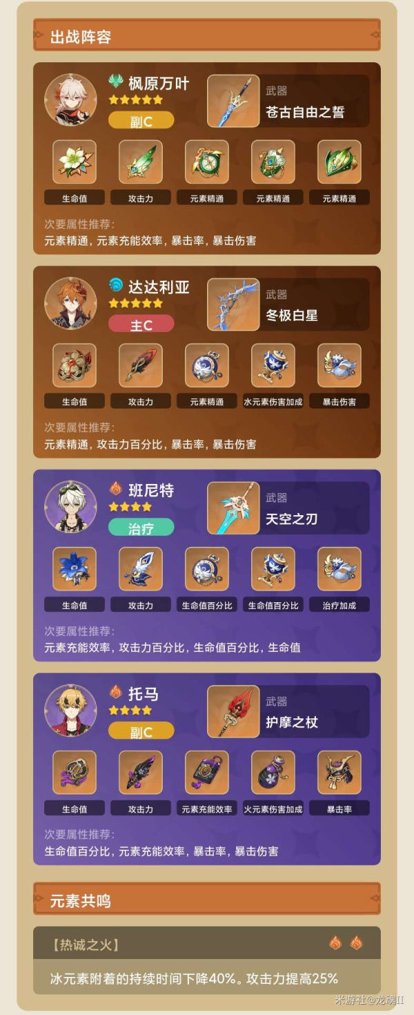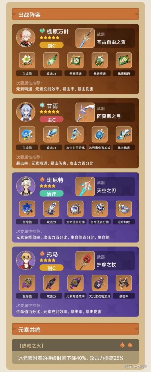 3.万叶+甘雨+托马+班尼特