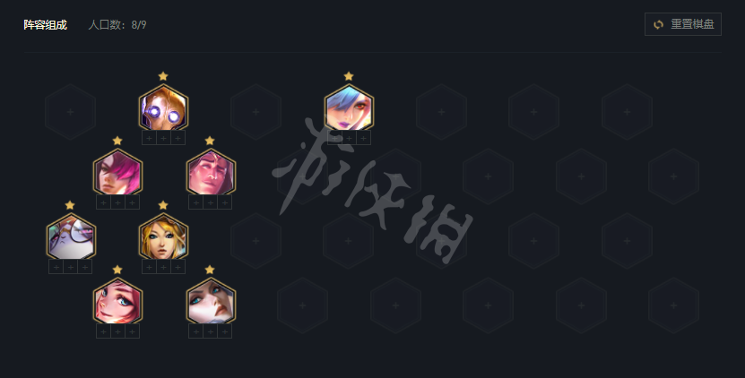 这套阵容可以在7人口搜牌,因为主C是4费卡,在7人口搜出2星永恩或者2星拉克丝再上8,如果前期过渡特别好,也可以直接4-4上8搜。