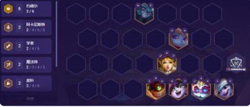 阵容羁绊:6约德尔2白魔法师2黑魔法师2学者2极客1大魔王