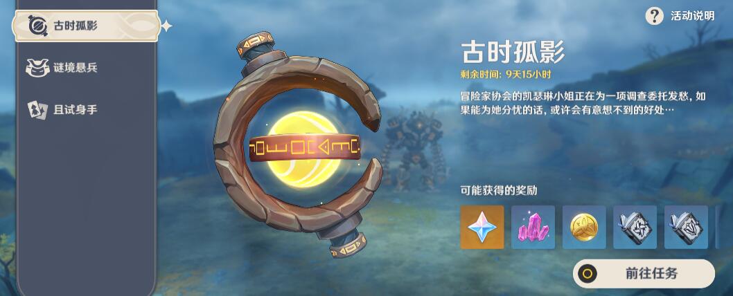 街机cn 来源:厂商 发表于:2021-11-05原神古时孤影什么时候开始?古时孤影活动已经正式开始了,大家可以开始新的挑战任务了,这里给大家带来了原神古时孤影活动玩法介绍,一起来看下吧。