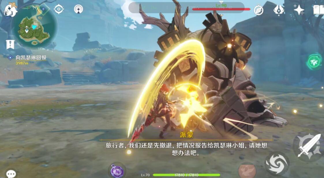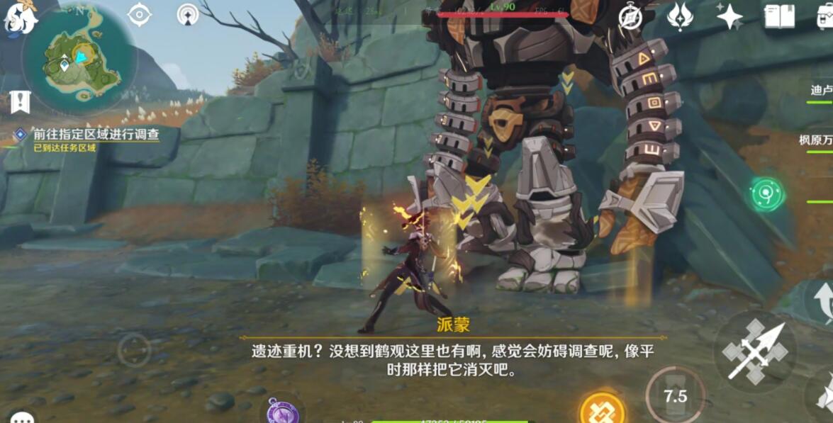 在第一次击败遗迹重机之后派蒙会出来提示,这台遗迹重机居然会复活。