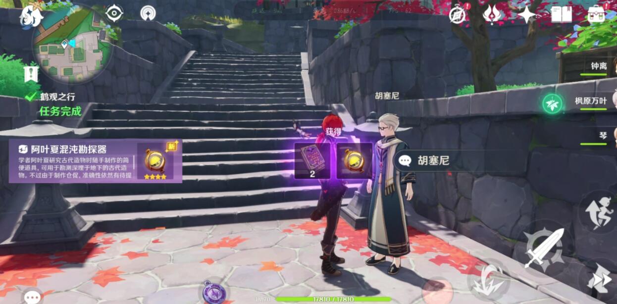 对话完之后前置任务就完成了,并且获得一个新的小道具------阿叶夏混沌勘测器。