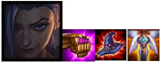 当然,金克丝也可以做下图卡莎的羊刀流,AP装给维克托也是一样的,但是维克托技能启动太晚,优先级比较低。
