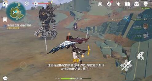 到了鹤观的指定地点后,可以看到一个会复活的遗迹重机,旅行者们打到它没血后,它会复活并触发后续任务,直接回到凯瑟琳处。