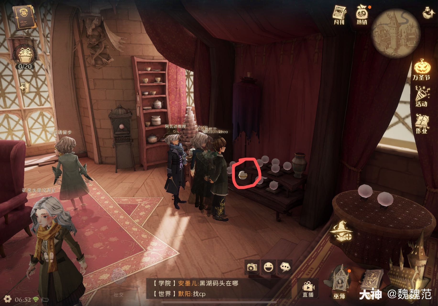 1.“相比教室,那个地方更像是一个堆满了水晶球的、阁楼和老式茶馆的混合物。”这个拼图需要我们来到城堡主楼。