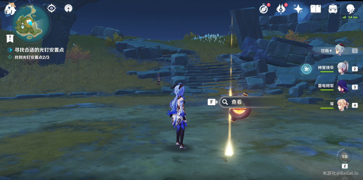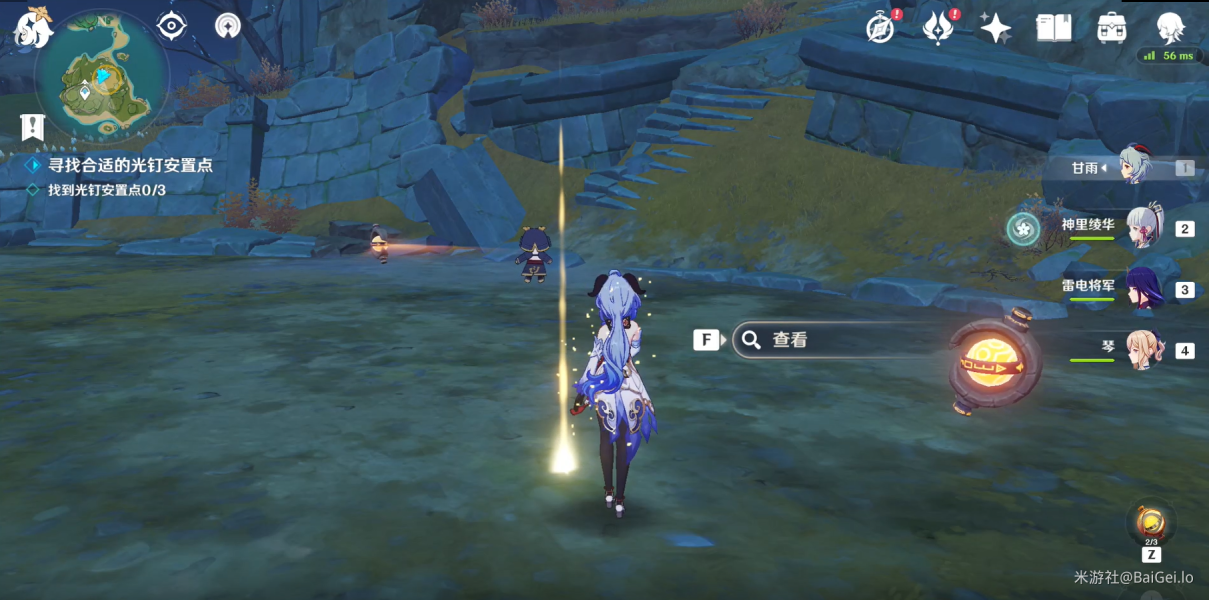 1.旅行者完成【中期·数据采样】任务后,能接到【自律机关能源研究:实践样例】的任务,与离岛胡塞尼完成对话后跟随指引前往鹤观进行调查,到达区域后,需使用【阿叶夏混沌勘测器】找出三个【普尔希娜光钉】机关,三个机关点位如下: