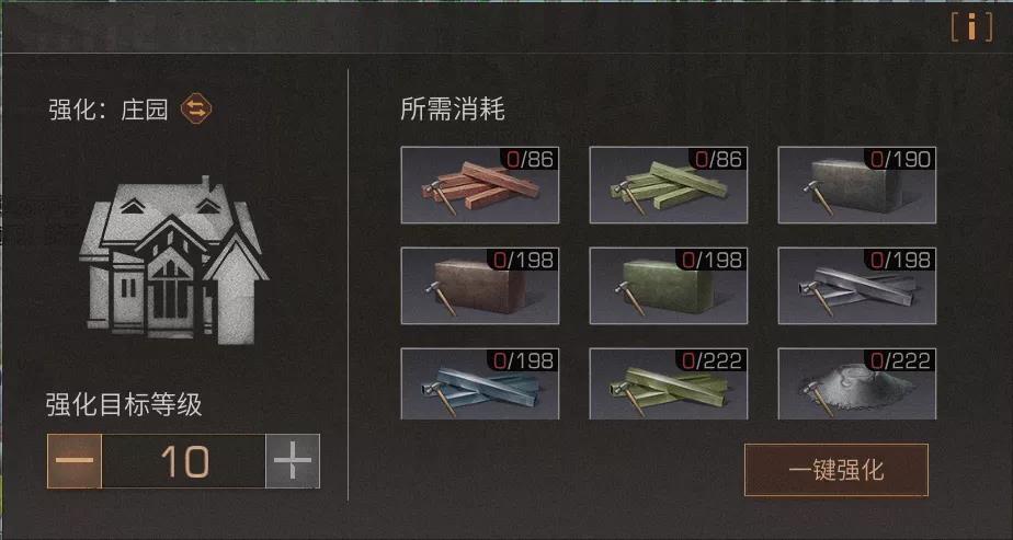 庄园分别达到17、20和23级时,便可以激活8级、9级和10级建筑强化,让幸存者们建造更为坚固的庄园,抵挡末日世界的未知危险。