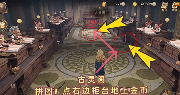 1、具体位置:大家可以从对角巷进入古灵阁,进门之后贴着右边柜台走,走到右边两组柜台中间,点击拾取地上的两枚金币,即可获得