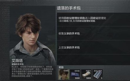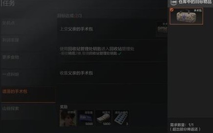2、进入管理处之后,我们可以在桌子上面收集到“父亲的手术包”,这个就是此任务的关键物品,我们拿上手术包以后就撤离;
