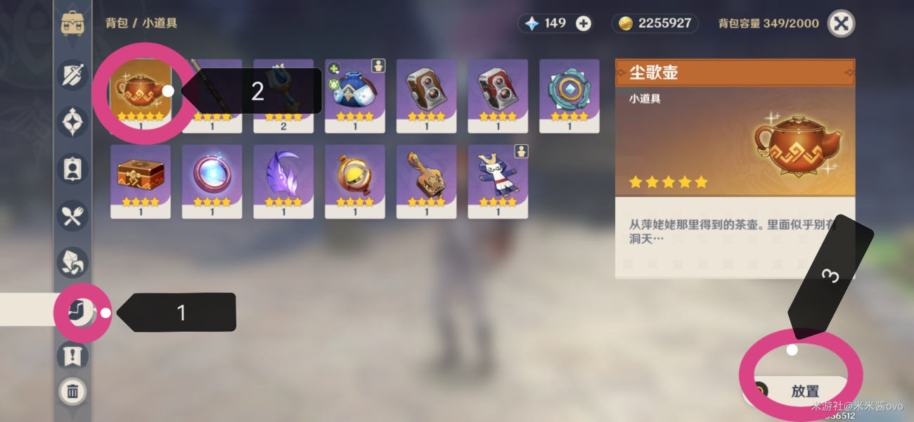 注意!放置尘歌壶需要在平坦并且前方无障碍物的空地上进行
